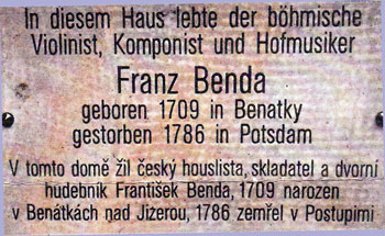 ![]() Einweihung einer Gedenktafel für Franz Benda mit anschließendem Konzert zu Ehren Franz Bendas Gedenktafel - Karl-Liebknecht-Straße 15, 14482 Potsdam