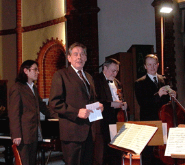 Begegnungskonzert in Witnica, Ensemble Polonaise und polnisches Ensemble, Grazyna Kruk, Sopran. Leitung Zbigniew Czarnuch. ![]() Deutsch-Polnischer Musikdialog Spotkanie-Wochen in der Schwartzschen Villa Steglitz. Musikalische Raritäten - mit Janusz Wawrowski, Violine und Maria Gabrys, Klavier. Solo und Duo. 31. Juli Musik am Hofe Friedrich II. im Wrangelschlösschen für 90. Geburtstag Frau Dr. Ziegert, Ensemble Polonaise. 24. Juli Jubiläumsveranstaltung zur 250-Jahrfeier der Bocksmühle der Familie Kindel im Spreewald mit Ensemble Polonaise, Unterhaltung und Polonaise als Gemeinschaftstanz. Musik vom Hofe Friedrichs des II. und Speisen der Zeit. 10. Mai Begegnungskonzert, Collegium Cantorum, Poznan und Amadeus Vocalensemble, Berlin, Ensemble Polonaise, im Programm - Gaude Mater Poloniae und Ave verum von Mozart. |